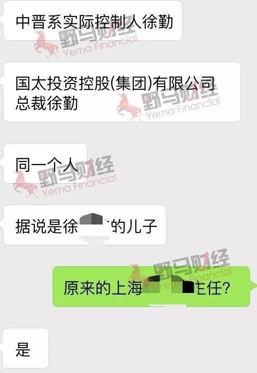 而随着调查,国太控股和“中晋系”的更多内幕将浮出水面,知情人士向野马财经透露实际控制人徐勤自称官员之子,会不会“坑爹”呢?让我们拭目以待。