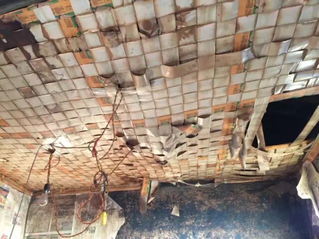 (杨改兰的房间,抬头看到编织的胶带)
