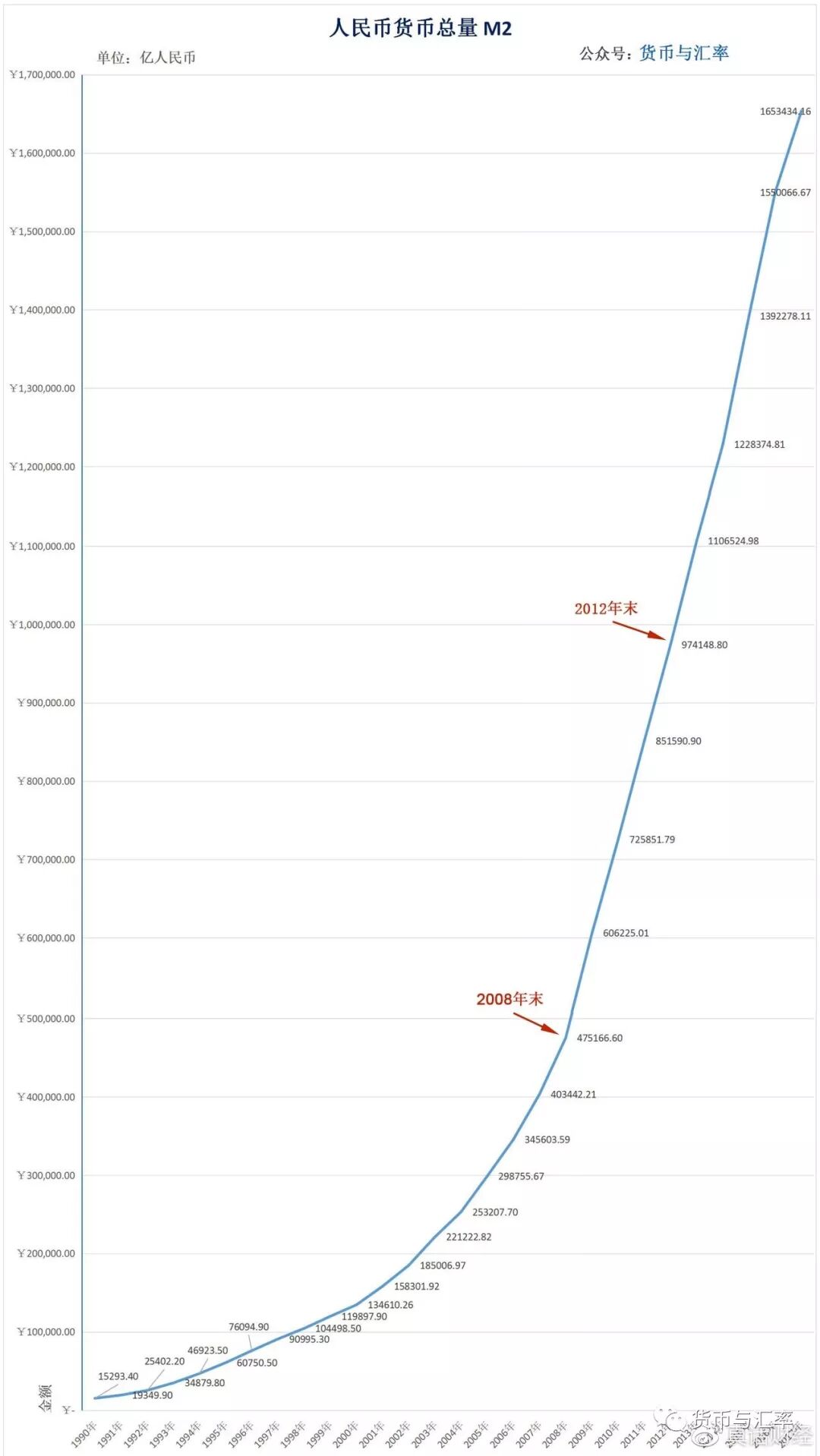 人民币货币总量,1990年-2017年10月