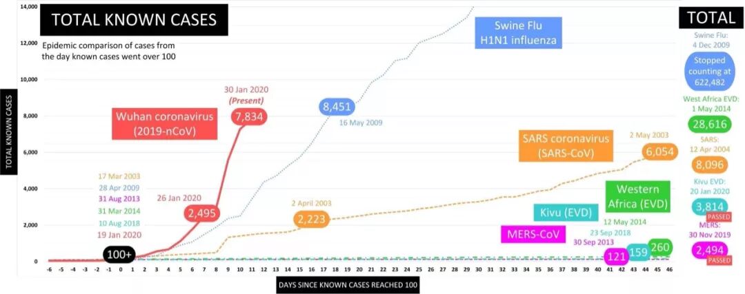 应该说,1月23日以来,武汉采取了强有力的控制措施,减少了病例向周边城市和国外的输出强度,加之国内其他地方和海外采取的检疫控制措施,有可能降低传染率,但在国内其他地方和世界各地发现的病例数量越来越多,也远远快于SARS的表现,表明这一流行病的规模还在继续扩大。
