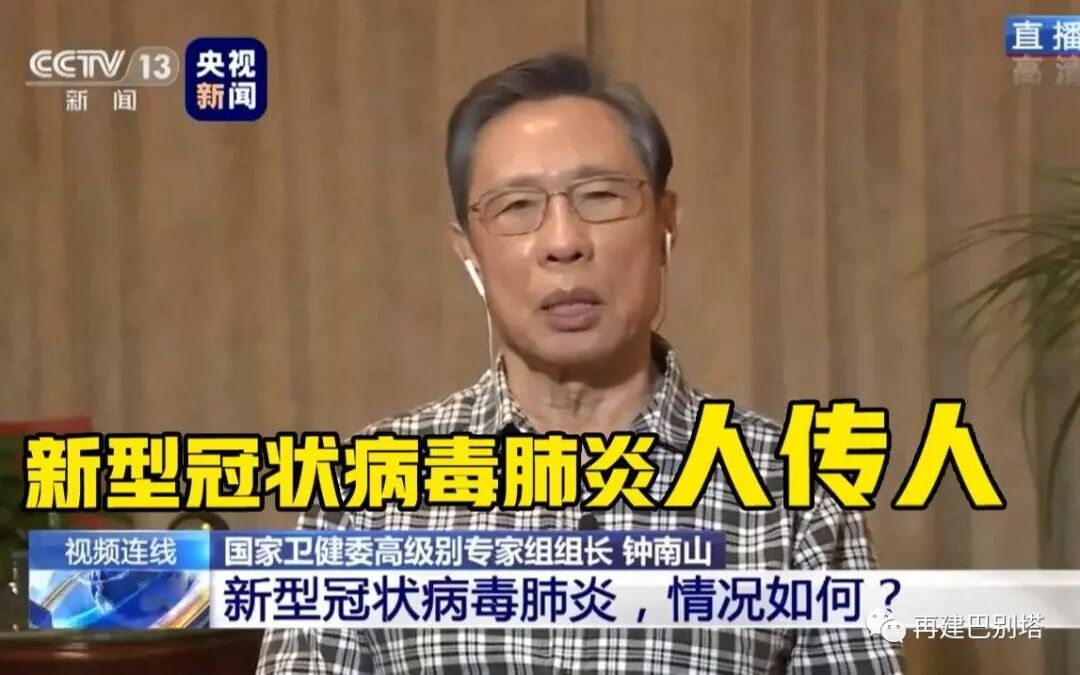 2020年1月20日,钟南山:根据目前的资料,新型冠状病毒肺炎是肯定的人传人,在广东有2个病例,没去过武汉,但家人去了武汉后染上了新型冠状病毒肺炎,现在可以说,肯定的,有人传人现象。