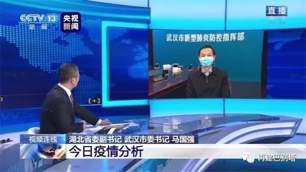 2020年1月31日晚《新闻1+1》栏目中,白岩松连线武汉市市委书记马国强,针对网友特别关注的问题进行答疑。马国强说:我现在是一种内疚、愧疚、自责的心态,如果早采取严厉的管控措施,结果会比现在好,对全国各地的影响要小,也会让党中央、国务院少操心。第二个心态是紧张。我从来没有遇到过如此重大的挑战,这场挑战是一场看不见敌人的战役。我们一方面要做防控,一方面要做救治,同时还要保障我们市民的正常生活,保证城市的正常运转。这样的心态由于我们工作没有做好,没有做得当机立断,导致这个疫情输出到了国外、输出到了国内,所以我说这是一个心情。第三是坚定信心。