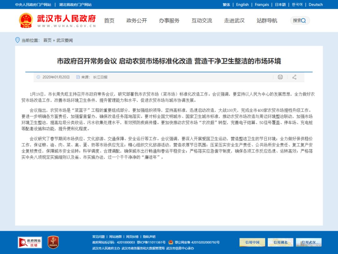 2020年1月1日,华南市场休市。8人因网上散布“武汉病毒性肺炎”信息被武汉市公安机关处理。谢琳卡医生发出的警示,被武汉警方认定为“造谣”,并给谢琳卡医生打来电话“沟通”。另一名医生依据他所在医院其它科室的情况,于12月30日在微信大学同学群里发帖说“确诊了7例SARS”,但很快在31日就被院方谈话并受到警方“训诫”。后来1月7日他所在科室也收治了疑似新冠肺炎病人,很快家属受到了传染,他自己也受到了传染。这是在大约1月10日。不仅如此,武汉警方还公开宣称“依法进行了处理”,央视很快进行了报道。