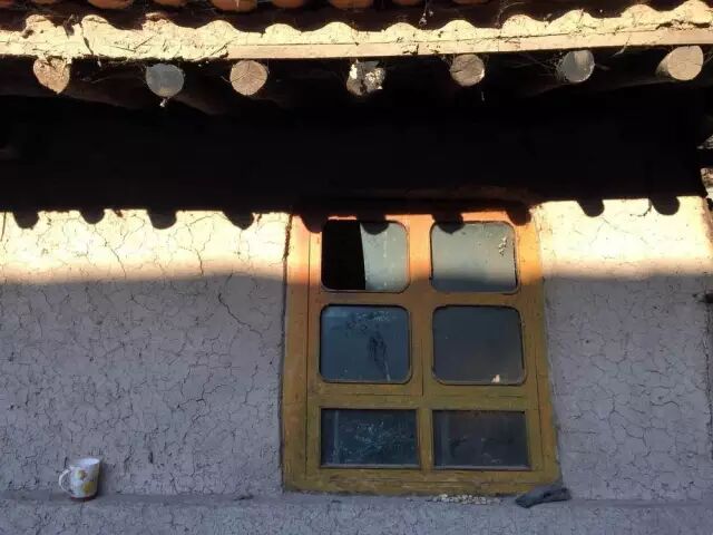 (图:杨改兰夫妻住的土屋,炕边窗户玻璃有六块,左上角少了半块,土窗台上晒着自家种的蚕豆。)